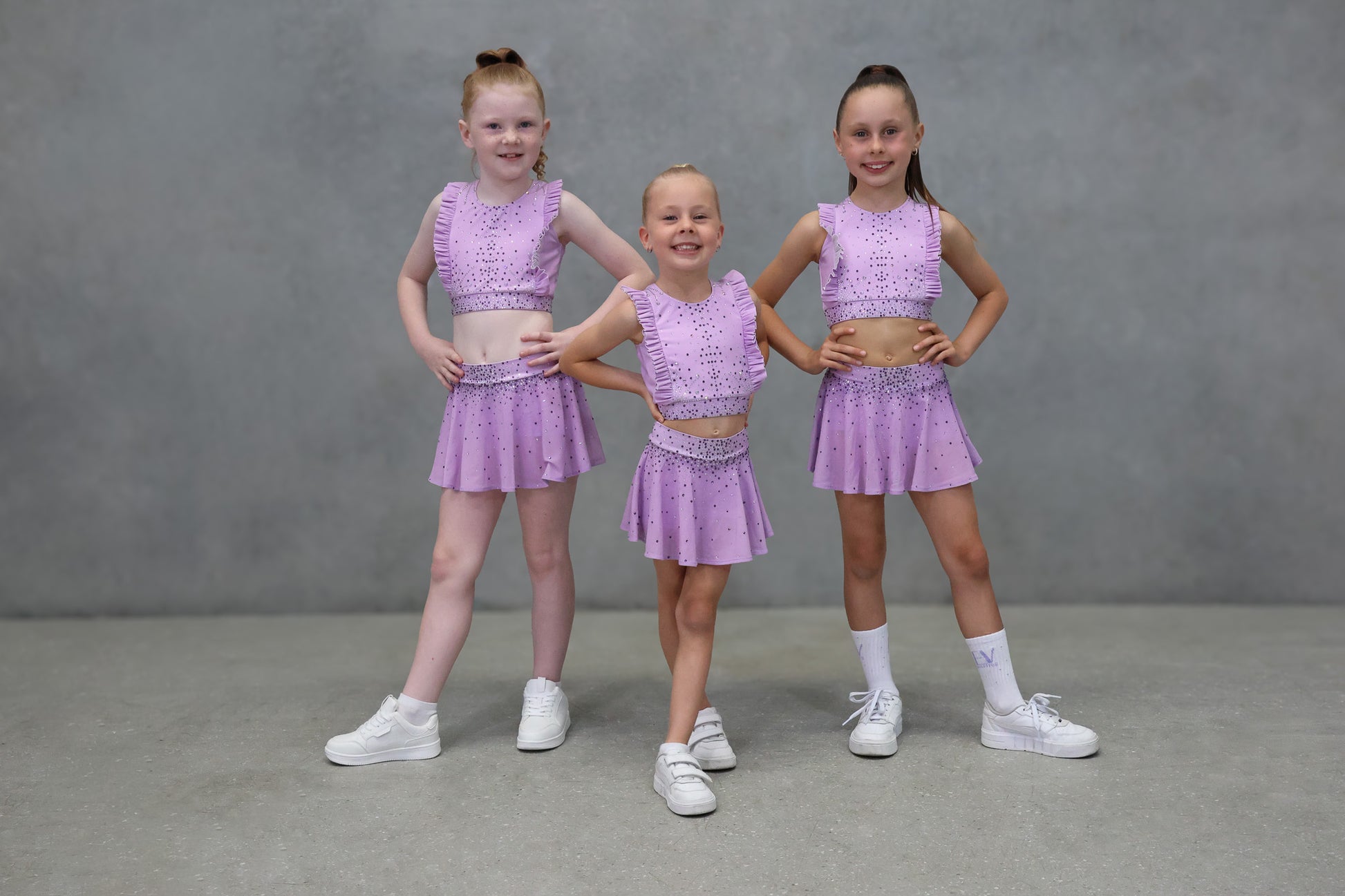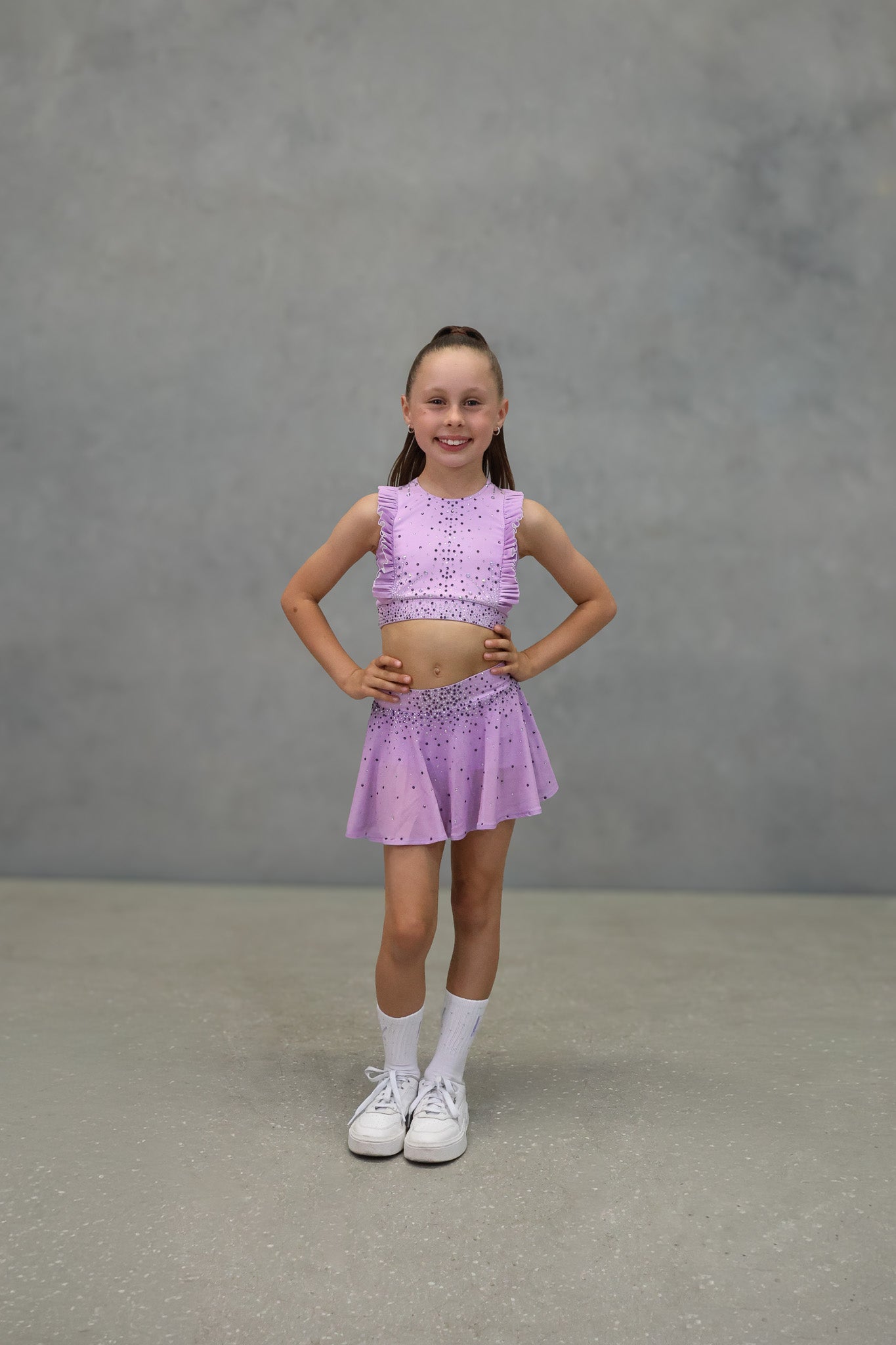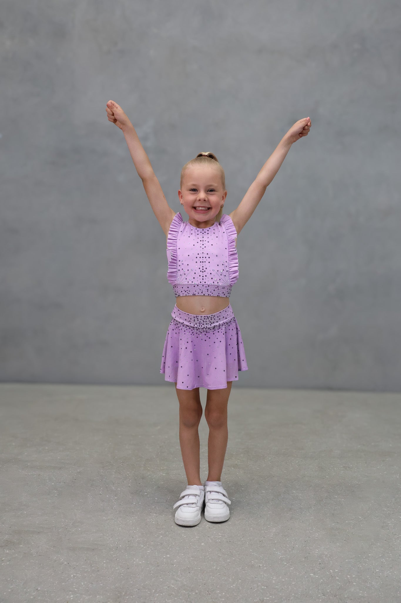Introducing the Luxe Dreaming Set—your complete Luxe Lilac look in one perfect package. This coordinated set pairs the Lilac Sporty Crop with the Lilac Sporty Skort, delivering style, performance, and sparkle for dance, cheer, training, and beyond.