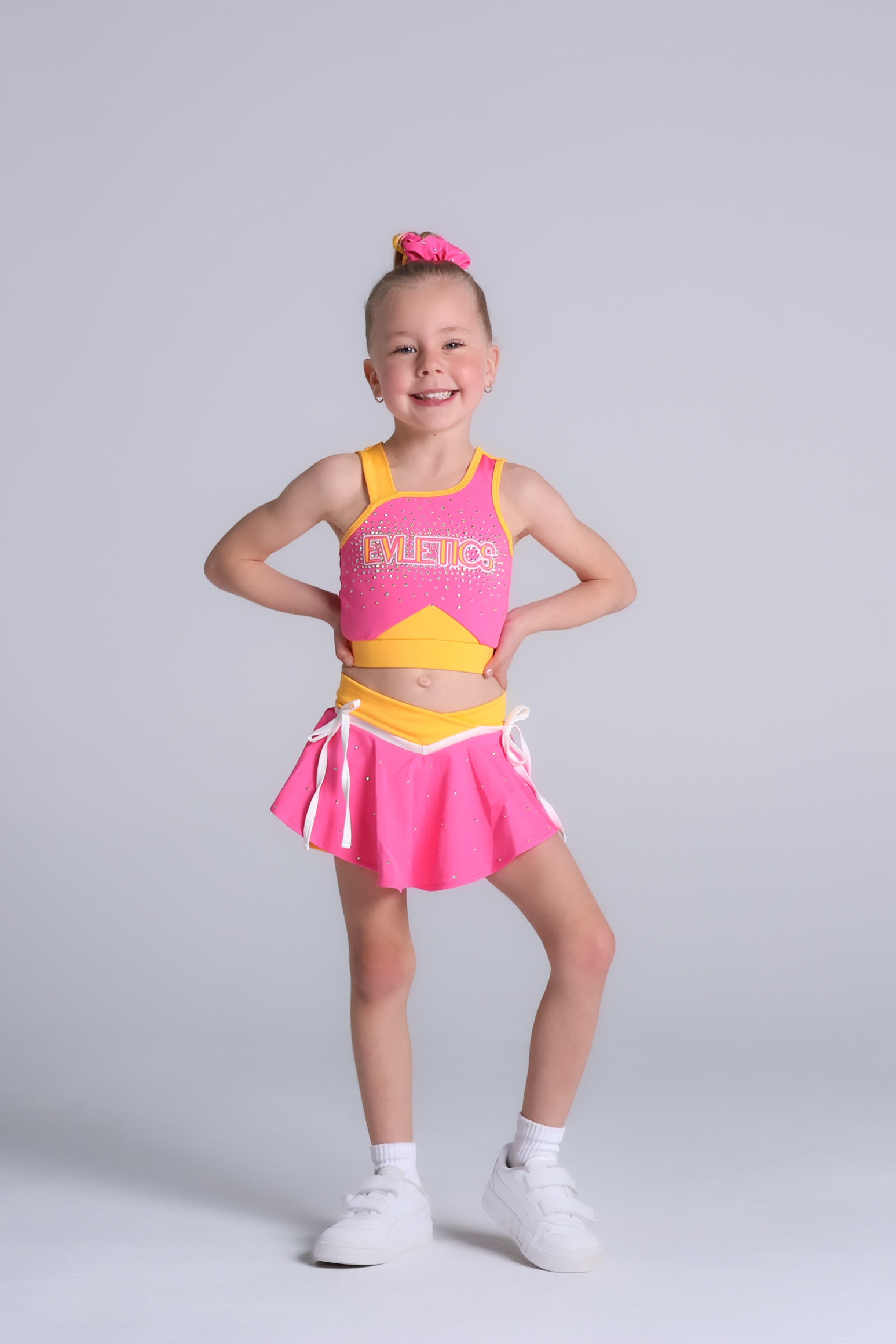 The Sunset Skort blends the freedom of shorts with the style of a skirt - delivering sleek movement, studio-ready support, and everyday EVLETICS shine. Whether it's dance class, acro practice, or comp prep, this active essential is built to keep up and stand out.